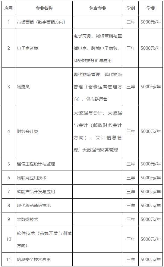 1.各专业学费均为5000元/学年,住宿费500或800元/学年。
